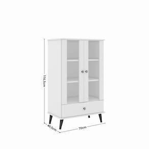 A Cristaleira Retrô com Vidro 2 Portas 1 Gaveta RT3107 Movelbento combina charme vintage e funcionalidade. Produzida em MDP 15mm e MDF 3mm, possui pés torneados em madeira maciça que valorizam o design retrô e garantem maior resistência. Com duas portas com vidro e uma gaveta inferior, oferece espaço ideal para expor louças, taças ou objetos decorativos, mantendo o ambiente organizado com elegância. Ideal para salas de jantar, cozinhas ou espaços gourmet, é a escolha perfeita para quem busca um toque clássico sem abrir mão da qualidade e durabilidade.