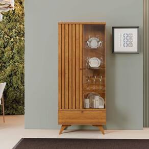 Cristaleira Ripada Versa C/led Pés Madeira Maciça - Mavaular Naturalle Uma Cristaleira moderna e sofisticada, um produto perfeito para embalezar seu ambiente. A Cristaleira possui 1 porta ripada e outro com porta de vidro, além das laterais e prateleiras com vidro também temperado em 4mm. Além de possui esses detalhes, a Cristaleira possui iluminação em LED, gavetas com corrediças telescópicas e lindos pés de Madeira Maciça. Esse móvel possui nas cores Naturalle e Off White com Naturalle. Medidas do produto:
