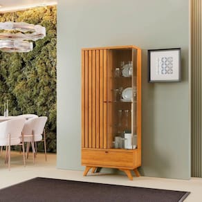 Uma Cristaleira moderna e sofisticada, um produto perfeito para embalezar seu ambiente. A Cristaleira possui 1 porta ripada e outro com porta de vidro, além das laterais e prateleiras com vidro também temperado em 4mm. Além de possui esses detalhes, a Cristaleira possui iluminação em LED, gavetas com corrediças telescópicas e lindos pés de Madeira Maciça. Esse móvel possui nas cores Naturalle e Off White com Naturalle.