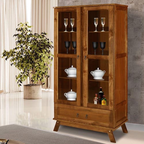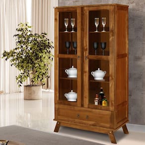 A Cristaleira Roma Ypê, é uma junção de madeira Pinus reflorestada e HDF, as portas são de madeira com vidro. Produto retro, muito linda e versátil, ideal para sala de jantar, pode ser usada também fazendo parte de ornamentação de festas! Acabamento da Gaveta: Pintura UV Acabamento da Porta: Pintura UV Acabamento da Prateleira: Pintura UV Altura dos Pés: 12 Ambiente Principal: Sala de Jantar Complexidade da Montagem: Baixa: pode ser montado por uma pessoa sozinha Cor: Ypê Cor do Produto: Ypê Cor Interna: Ypê Escala de Brilho: Fosco Escala de Brilho da Porta: Fosco Escala de Brilho da Prateleira: Fosco Espessura do Vidro: 0.3 Gaveta com Chave: Não Itens Inclusos: 1 Cristaleira, 1 Kit Ferragens e 1 Manual de Montagem Manual de Montagem e Instalação: https://product-hub-prd.madeiramadeira.com.br/867963/documents/c17c5c97-2a46-4c15-8ffd-8cbc3e97bca997cristaleiraitaliarodmix1.pdf Material da Gaveta: Madeira/HDF Material da Porta: Vidro Material da Prateleira: MDF Material Principal: Madeira Maciça Necessita Montagem: Sim Origem do Produto: Nacional Peso: 46 Peso Máximo por Gaveta: 10 Peso Máximo por Prateleira: 10 Possui Adega: Não Possui Espelho: Não Possui Gavetas: 01 Possui iluminação: Não Possui Nicho: Não Possui Pés: 04 Possui Portas: 02 Possui Prateleiras: 03 Possui Rodízio: Não Possui Vidro: Sim Recomendações de Uso, Manutenção e Limpeza: Usar Pano Umido, Sem Produtos Quimicos, Logo Após Secar Sapatas Niveladoras: Não Sistema de Montagem: Parafusos, Porcas, Corrediças e Puxadores Suporta Até (kg): 50 Tipo de Corrediça da Gaveta: Metálica Simples Tipo de Dobradiça/Corrediça da Porta: Metálica Tipo de Madeira Maciça: Pinus Tipo de Porta: Bater Tipo de Puxador da Gaveta: Externo Tipo de Puxador da Porta: Externo Ean: 7909903414187