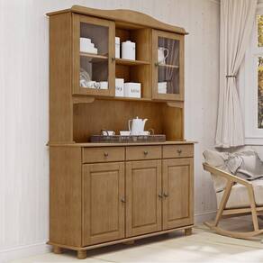 A Cristaleira Rubi da Finestra Móveis é uma peça sofisticada, desenvolvida com estrutura em madeira maciça de pinus de reflorestamento e acabamento em pintura acetinada com verniz PU e UV, garantindo durabilidade e um toque elegante ao ambiente. Conta com cinco portas, sendo duas superiores com vidro liso incolor e dobradiças com amortecimento para maior conforto no uso. Internamente, possui prateleiras em madeira maciça com capacidade de até 10kg distribuídos. O móvel dispõe ainda de três gavetas com corrediças telescópicas e capacidade para até 5kg cada. Os puxadores metálicos em ouro envelhecido completam o design clássico e refinado da peça, ideal para salas de jantar ou espaços gourmet.