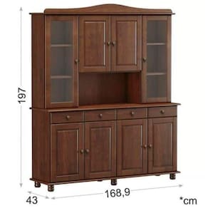 Produzido em madeira maciça, proporcionando resistência e durabilidade. Amplo espaço interno, garantindo maior firmeza ao móvel. Puxadores metálicos em ouro envelhecido. Gaveta ampla com melhor fixação, corrediça telescópica para melhor deslize da gaveta. Dobradiças metálicas dando maior durabilidade e resistência ao abrir e fechar as portas. Fundo anti-mofo e Pintura Acetinada Verniz PU e UV (fosco), garantindo a conservação do móvel, além de oferecer beleza ao móvel. Vidro incolor e pés em madeira maciça.