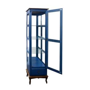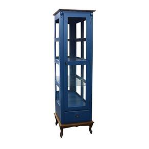 - 01 Cristaleira de Madeira 1 Porta 1 Gaveta 3 Prateleiras Lateral com Vidro Fundo de Espelho Pés Luiz XV