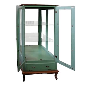 - 01 Cristaleira de Madeira 2 Portas 1 Gaveta 2 Prateleiras Lateral com Vidro Fundo com Espelho Pés Luiz XV