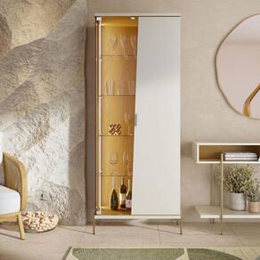 Cristaleira com Porta de Vidro e Led Sena 180 cm Off White Matte / Freijó - Colibri