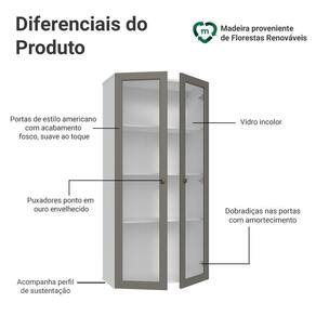 Cor: Cinza | Garantia: 3 meses contra de fabricação | Dimensões - Altura: 141 cm | Dimensões - Largura: 70 cm | Dimensões - Profundidade: 31 cm | Produto: Cozinha | Marca: Madesa | Peso do Produto: 26 kg | Material: MDP | RBN: Casa/Móveis/Móveis de Cozinha | Estado de Origem: RS | Material para Filtro: MDP | Conteúdo da embalagem: 1 Armário Aéreo | Instruções/Cuidados: Utilize um pano limpo, levemente umedecido e seque em seguida a superfície. Não usar produtos químicos ou abrasivos para a limpeza. Recomendamos polir seu móvel com lustra-móveis duas a três vezes por ano. | Quantidade de portas: 2 | Produto precisa de Montagem?: Sim | Altura do Produto com Embalagem (cm): | Largura Produto Com Embalagem (cm): | Comprimento Produto Com Embalagem (cm): | Peso Produto Com Embalagem (Kg): 25,27 | Dimensões do item P x L x A (item_depth_width_height): depth#value=31;depth#unit=centimeters;height#value=141;height#unit=centimeters;width#value=70;width#unit=centimeters | Nome do Simples no Fornecedor: Cristaleira Suspensa 70 cm 2 Portas de Vidro Branco/Cinza Vik Madesa | Fabricante: Madesa | Tipo de móveis de cozinha: Armário | Linha: Vik | Materiais do corpo: MDP | Materiais das portas: MDP | Quantidade de caixas de embalagem: 2 | Principais Características do Produto 0 (bullet_point#0): Dimensões: 141 cm altura x 70 cm largura x 31 cm profundidade | Principais Características do Produto 1 (bullet_point#1): Inspiração no estilo americano, frentes com acabamento chanfrado e textura fosca suave ao toque | Principais Características do Produto 2 (bullet_point#2): Puxadores ponto em ouro envelhecido e portas com vidro e fechamento suave | É Frágil: Não | Principais Características do Produto 3 (bullet_point#3): A combinação perfeita entre design clássico e elementos modernos | Quantidade de Itens: 1 | Certificação de teste externa: Sim | Modelo: G25832F8VKSU | Componetes Incluidos: Portas | Precisa de baterias ou pilhas: Não | da peça: G25832F8VKSU | Preço sugerido sem impostos: | Peso do Item: value=26;unit=kilograms | Descrição do Tamanho: 141 cm x 70 cm x 31 cm | number_of_boxes: 2 | is_assembly_required: Sim | part_number: G25832F8VKSU | Inclui manual de montagem: Sim | external_testing_certification: Sim | model_number: G25832F8VKSU | number_of_items: 1 | item_dimensions: depth#value=31;depth#unit=centimeters;height#value=141;height#unit=centimeters;width#value=70;width#unit=centimeters | Tonalidade: Cinza | Cor: Branco/Cinza