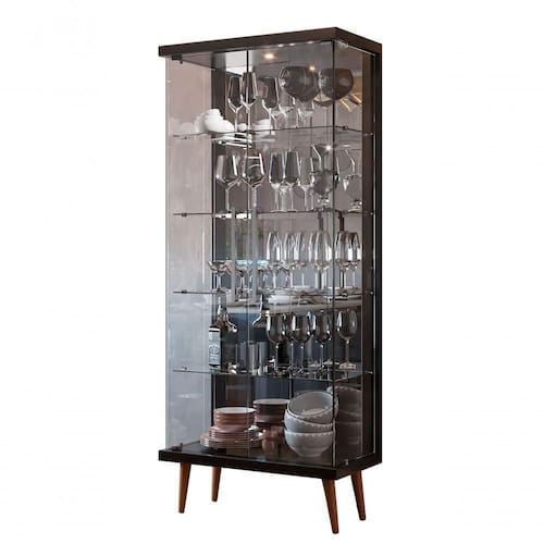 Cristaleira Tifanny Preto - Imcal Móveis A Cristaleira Tifanny - Imcal Móveis além de portas, laterais e prateleiras de vidro temperado, possui lindos pés com estilo retrô que garantem um charme a mais na peça. Charmosa e funcional, acomoda todos os seus objetos mais ões do Produto Montado:Altura: 179 cmLargura: 75,5 cmProfundidade: 38 cmObservações:- Portas, prateleiras e laterais em vidro temperado;- Puxadores de alumínio polido;- Espelho no fundo de 3mm;- Luminária LED (Bivolt);- 4 pés com estilo Retrô em madeira maciça;- Pintura Ultravioleta com acabamento fosco. Marca: Não Informado