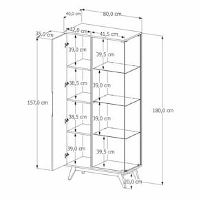 Produzida em MDF com pés de madeira maciça, possui 2 portas (sendo 1 de vidro 4 mm) e 6 prateleiras para organizar e expor suas taças e objetos com elegância.
