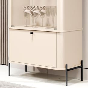 A Cristaleira Tucupí da JB Bechara é uma peça sofisticada e funcional, perfeita para quem busca aliar design moderno à praticidade. Seu formato curvado confere um toque de elegância, enquanto os puxadores delicados e os pés em metal proporcionam um contraste contemporâneo e robusto.