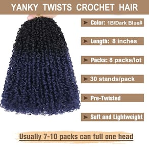 Nome do produto: COOKOO 20 cm pré-penteado Yanky Twists cabelo de crochê sintético Material do cabelo: Crochet yanky twists Hair for Women are made of high temperature synthetic fiberhair. Comprimento do cabelo: Tranças de crochê torcidas torcidas de 20 cm Cor do cabelo: 9 cores estão disponíveis, (1B#, 350#, 1B/27#, 1B/30#, 1B/Bug#, 4/27#, 1B/30/27#, 1B/27/613#, preto/roxo/azul escuro). Mais cores e centímetros serão adicionados. Pacote de cabelo: 8 pacotes/lote, 30 fios/pacote, você pode comprá-lo junto com outras cores para fazer você mesmo suas próprias torções exclusivas. Por que nos escolher? 1. Nosso cabelo de crochê Bohemian Passion Twists é feito de fibra sintética, feito à mão, é macio, sem emaranhamento, sem queda, extremamente leve, inodoro, adequado à água, despreocupado, pronto para nós e reutilizável. Instalação rápida e fácil, economia de tempo, ampla variedade de usos. 2. O cabelo trançado torcido pré-torcido tem cachos muito naturais nas pontas, fica lindo quando você usá-lo, você pode usá-lo em festas e no uso diário, você receberá muitos elogios. 3. Esta extensão de cabelo sintético Goddess Passion Twist é mais fofa do que o cabelo de paixão atualmente no mercado, mas também mais leve para que você não sinta nenhum peso ao usá-lo. É adequado para nadar e tomar banho, e cada trança tem um efeito único de ondulação e ondulação para um visual muito natural. Uma agulha de crochê está incluída no pacote. - ?Cabelo de crochê torcido Yanky torcido de 20 cm? Prepare-se para mostrar seu charme com nossas lindas pontas cacheadas trançadas Yanky Twists! Nosso novo estilo de tranças de crochê Bohemian Yanky Twists é pré-torcido, com pequenos cachos muito naturais nas pontas, muito fofos. 8 pacotes/lote, 30 fios/pacote, total de 240 fios, geralmente 7-10 pacotes podem encher uma cabeça. Há muitas cores para escolher para combinar com o seu estilo! - ?Feito de material de alta qualidade, sem queda]?Nosso pequeno cabelo de crochê Passion Twist é feito de fibra sintética de alta qualidade, 100% feito à mão, é macio, sem emaranhamento, sem queda, extremamente leve, inodoro, adequado à água, despreocupado, pronto para nós e reutilizável. Parece muito natural e tem a aparência geral do cabelo humano. Além disso, já que foi pré-torcido, não embaraça, então se você estiver mais preocupado com isso, fique tranquilo. - ?Instalação rápida e fácil?O cabelo trançado sintético Yanky Twist tem um design pré-laço separado, por isso é muito fácil de usar e economizará tempo e dinheiro, permitindo que você obtenha um visual profissional sem esforço em um curto espaço de tempo! - ?Leve e duradouro?O cabelo curto Yanky Passion Twists é muito leve e brilhante, e será muito relaxante de usar sem qualquer peso no seu cabelo, garantindo plenitude. Este estilo não só fica ótimo, mas também oferece proteção para o seu cabelo natural. Com cuidado simples, este cabelo pode durar até 12 semanas ou até mais, tornando seu cabelo mais saudável e melhor. - ?Penteado variável? Este cabelo trançado de crochê pré-torcido Majesty é versátil, além de ser utilizado diretamente, você pode usar sua própria imaginação para fazer diferentes penteados novos com Yanky Twist, como cabelo de crochê Butterfly Locs, Locs envelhecido, falsos locs, tranças de paixão, cabelo torcido senegalês e assim por diante. Este cabelo é adequado para mulheres de todas as idades, uso diário e sempre que quiser mostrar seu charme.