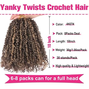 Unionbeauty Cabelo de crochê Yanky torcido pré-torcido de 25,5 cm, 8 pacotes de cabelo pré-enrolado micro torcido de crochê com mistura encaracolada, marrom e loiro, extensões de cabelo de crochê - Passion Twist Crochet Hair Material: nosso cabelo de crochê Yanky Twist pré-torcido é feito de fibra sintética de boa qualidade, 100% feita à mão. O material é seguro, a qualidade pode ser garantida. Além disso, alguns cuidados simples após a instalação do cabelo farão com que o cabelo dure muito tempo, e nosso cabelo de crochê Passion Twist é muito durável. - Característica do cabelo de crochê torcido da paixão: cabelo de crochê torcido torcido pré-torcido e pré-torcido, textura macia, sem emaranhados, sem odor, zero queda, leve, aparência muito natural. O cabelo é leve, não causará danos ao seu cabelo autêntico, não aumentará o peso do seu cabelo. Ao mesmo tempo, nosso cabelo de crochê Passion Twist é fofo e cheio, deixará seu cabelo mais bonito. - Cabelo de crochê Yanky Twist Uso: O cabelo de crochê torcido Yanky tem um design pré-laço separado, por isso é fácil de instalar e usar rapidamente, pode economizar tempo e dinheiro, para que você não perca muito tempo para obter o cabelo elegante e bonito que deseja. - Especificações do cabelo de crochê Yanky Twist pré-torcido: nosso cabelo de crochê Passion Twist tem 20 cm, há 8 bolsas/lotes, 30 fios/bolsa, um total de 240 fios, o suficiente para você completar um penteado completo e fofo, e temos muitas opções de cores, você pode escolher sua cor favorita para completar sua combinação de moda. Acredite que seu charme será mais perceptível após a conclusão e, assim, receba mais elogios. - Yanky Twist Crochet Hair Ocasiões: O cabelo de crochê Yanky Twist pode ser utilizado para festas de amigos, uso diário, sair para viagens, casamentos, boates, cerimônias de formatura, presentes de Dia das Mães e outras ocasiões.