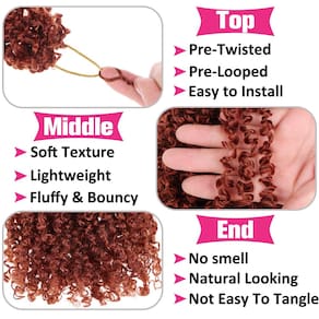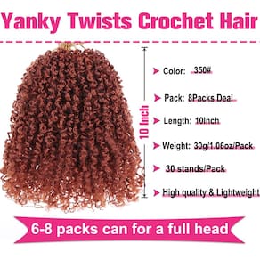 Unionbeauty Yanky Twist Crochet Hair 25 cm, pacote com 8 unidades, pré-torcido, micro mola, crochê, tranças de crochê com vermelho cobre saltitante, pré-enrolado, mola, torcido, sintético, cacheado, - Passion Twist Crochet Hair Material: nosso cabelo de crochê Yanky Twist pré-torcido é feito de fibra sintética de boa qualidade, 100% feita à mão. O material é seguro, a qualidade pode ser garantida. Além disso, alguns cuidados simples após a instalação do cabelo farão com que o cabelo dure muito tempo, e nosso cabelo de crochê Passion Twist é muito durável. - Característica do cabelo de crochê torcido da paixão: cabelo de crochê torcido torcido pré-torcido e pré-torcido, textura macia, sem emaranhados, sem odor, zero queda, leve, aparência muito natural. O cabelo é leve, não causará danos ao seu cabelo autêntico, não aumentará o peso do seu cabelo. Ao mesmo tempo, nosso cabelo de crochê Passion Twist é fofo e cheio, deixará seu cabelo mais bonito. - Cabelo de crochê Yanky Twist Uso: O cabelo de crochê torcido Yanky tem um design pré-laço separado, por isso é fácil de instalar e usar rapidamente, pode economizar tempo e dinheiro, para que você não perca muito tempo para obter o cabelo elegante e bonito que deseja. - Especificações do cabelo de crochê Yanky Twist pré-torcido: nosso cabelo de crochê Passion Twist tem 20 cm, há 8 bolsas/lotes, 30 fios/bolsa, um total de 240 fios, o suficiente para você completar um penteado completo e fofo, e temos muitas opções de cores, você pode escolher sua cor favorita para completar sua combinação de moda. Acredite que seu charme será mais perceptível após a conclusão e, assim, receba mais elogios. - Yanky Twist Crochet Hair Ocasiões: O cabelo de crochê Yanky Twist pode ser utilizado para festas de amigos, uso diário, sair para viagens, casamentos, boates, cerimônias de formatura, presentes de Dia das Mães e outras ocasiões.