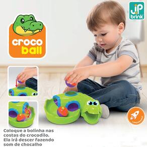 - ESPECIFICAÇÕES: • Modelo: Croco Ball • Indicado para crianças a partir de 12 meses • Medidas aproximadas: Largura: 27 cm / Altura: 13 cm / Profundidade: 18 cm • Composição/Material: Polipropileno ( Plástico ) • Brinquedo aprovado pelo INMETRO Marca: JxP Brink