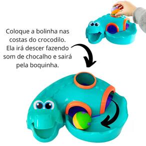 • Estimulação Motor: Os bebês irão brincar colocando a bolinha na parte de cima do crocodilo para fazer a bolinha rolar por dentro dele, até sair pela boca, ajudando no desenvolvimento das habilidades motoras finas. Pura Diversão