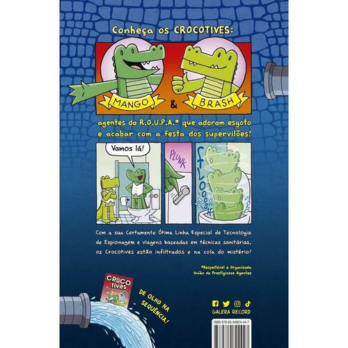 Crocotives em ação! Os supervilões não têm a menor chance quando Mango & Brash estão no caso. Eles estão na cola do mistério, e pode crer que a solução é certa. Com texto e ilustrações de John Patrick Green, Crocotives é uma divertida HQ, perfeita para detetives mirins. Lupas em mãos e boa investigação! Deu ruim? Chama os Crocotives para resolver o problema! O pesadelo de qualquer vilão, o motivo da terapia dos bandidos, o terror do malfeitor, a dupla MANGO & BRASH é IMBATÍVEL. Quando o chef Patrizio Bigodini desaparece sem deixar pistas, os Crocotives são chamados para uma missão: se infiltrar na padaria Bate-Amassa e solucionar o mistério! Armados de astúcia e um bigode falso, Mango & Brash vão colocar a MÃO NA MASSA.* *Cuidado! Ler este livro pode levar a um sério risco de querer se tornar um detetive e/ou um superespião. A editora não se compromete com possíveis repercussões investigativas.