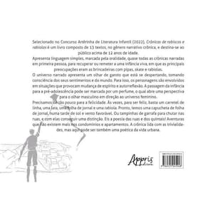 Selecionado no Concurso Artêrinha de Literatura Infantil (2022), Crônicas de rabiscos e rabiolas é um livro composto de 13 textos, no gênero narrativo crônica, e destina-se ao público acima de 12 anos de idade. Apresenta linguagem simples, marcada pela oralidade, quase todas as crônicas narradas em primeira pessoa, para recuperar ou remeter a uma infância viva, em que as principais preocupações eram as brincadeiras com pipas, skate e rabiolas. O universo narrado apresenta um olhar de garoto que está se despertando, tomando consciência dos seus sentimentos e do mundo. Para isso, os personagens são envolvidos em situações que provocam mudança de espírito e autorre?exão. A passagem da infância para a pré-adolescência pode ser marcada por um perfume, o qual abre uma perspectiva para o olhar masculino em direção ao universo feminino. Precisamos de tão pouco para a felicidade. Às vezes, para ser feliz, basta um carretel de linha, uma lata, uma folha de jornal e uma rabiola. Pronto, temos uma capucheta de folha de jornal, numa tarde de sol e vento favorável. Ou tampinhas de garrafa para chutar nas ruas, e com elas conseguir uma distinção. Eis a poesia das ruas e dos quintais! Aventuras que não existem mais nos condomínios e apartamentos. A crônica lida com as trivialidades, mas aqui pode ser também uma poética da vida urbana.