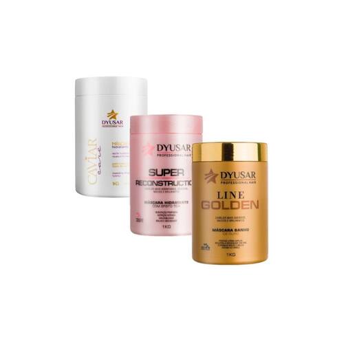 Máscara Line Golden Professional Hair DYUSAR 1 kg é uma máscara capilar que protege a fibra capilar, recupera a integridade dos fios e promove maciez e brilho intenso ao cabelo.