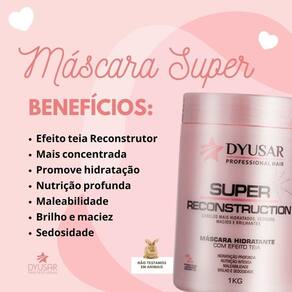Mascara super reconstruction dyusar professional hair. efeito teia. A mascara Hidratante é uma máscara capilar que tem efeito teia, promove hidratação profunda, nutrição intensa, maleabilidade, brilho e sedosidade.