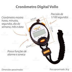 Por isso, conte com o cronômetro eletrônico da Vollo que além de te ajudar a medir o tempo, possui hora, data, alarme, precisão de 1/100 segundos e ainda contém cordão para transporte.