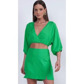Blusa cropped feminino com as mangas curtas elastico na barra
