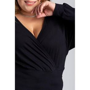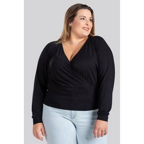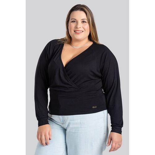 Cropped Plus Size Transpassado Frente Decote "V" Mangas Morcego - Serena - Preto - G3