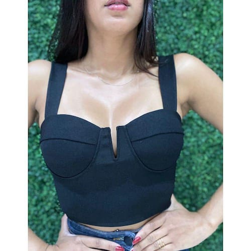 Detalhe: Cropped Com Abertura em V Alças Frontais Com Bojo e Zíper Atrás.