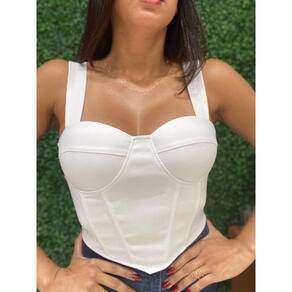 Cropped Slim Corselet com Bojo Estruturado Branco