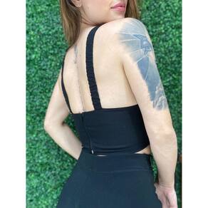 Detalhe: Cropped Com Decote em V mangas em elastico Fletiveis Com Bojo e Zíper