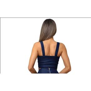 Top feminino em tecido jeans de algodão. Elaborado em malha de algodão, este modelo possui alças largas, recortes frente e costas , fechamento na frente por zíper,  modelagem ajustada ao corpo. O jeans de algodão conta com toque suave e confortável, promovendo um caimento perfeito. Invista em combinações com calças e acessórios para um visual incrível.