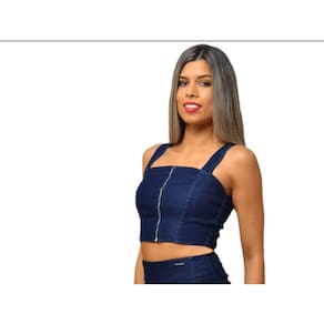 Cropped Top Jeans Feminino com Zíper Moda Verão