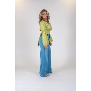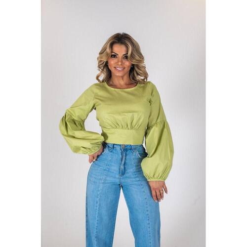 Cropped Tricoline Manga Balão, possui gola redonda e detalhe de fechamento nas costas com fita do mesmo tecido para amarração em laço ou nó. As blusas com manga balão são aliadas para quem deseja alinhar o corpo, pois trazem volume a região dos ombros e isso equilibra o volume do quadril, criando um efeito de harmonia. Código do Produto: 88297 Marca: Khalli