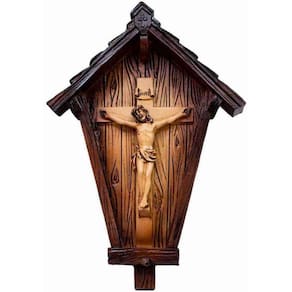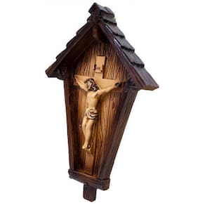 Crucifixo Casa 20Cm - Enfeite Resina Enfeite de Resina Decorativo na imagem do Crucifixo dentro de uma casa de 20cm de altura. Use pendurado na parede. Detalhes: Peso 0,200 gramas; Altura 20cm.