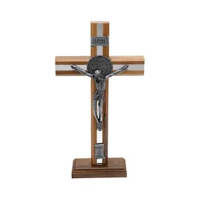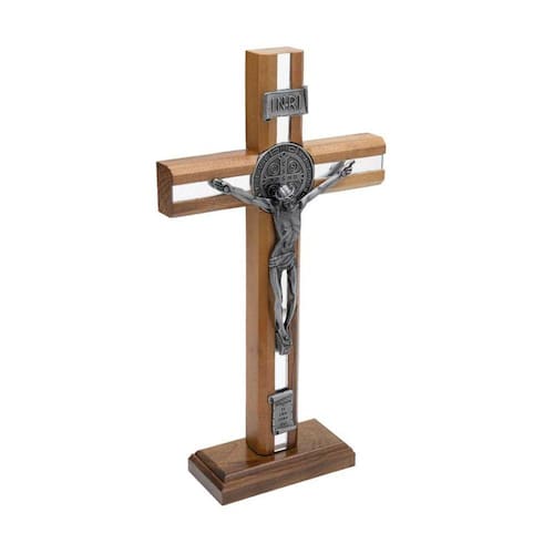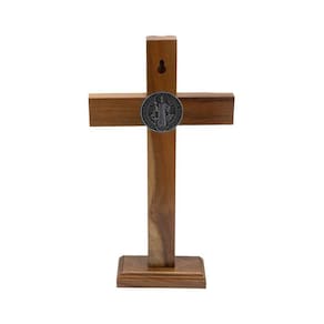 Produto confeccionado em madeira frisada com medalha de São Bento em Onix e acrílico espelhado, trazendo um acabamento fino e real ao produto.