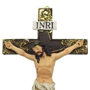 Crucifixo de Parede Resina 25 cm A Cruz simboliza a glorificação de Cristo, um sinal de entrega de amor que possibilitou a nossa salvação. Dimensões: altura: 23 cm - Largura: 12 cm - Profundidade:4 cm Dimensões aproximadas do produto. Produto pintado a mão, podendo sofrer variações de cores. Marca: Não Informado Ean: 6988100786151