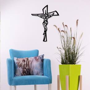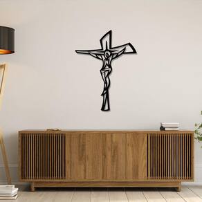 Especificações Técnicas: Medidas: comprimento: 39 cm altura: 3mm largura: 59 cm Material: mdf 3mm Cor: preto Tema: religioso Formas de instalação: basta utilizar fitas dupla face Quantidade: 1 unidade