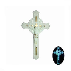 Detalhes: Modelo: Cruficixo de parede Formato: Cruz Tamanho: 28,5 de altura por 16,5 largura. Cor principal: Fosforescente ou Fosforescente com Ouro Envelhecido Cores dos detalhes: Dourado