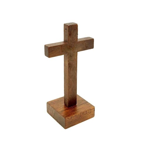 O Crucifixo de Mesa 7,5 cm é uma singela cruz de madeira natural tratada com verniz fosco, sem Cristo e base fixa para ser colocado em mesa, altar doméstico, prateleira, escritório, etc.