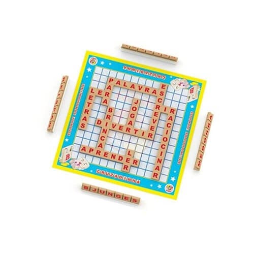 Jogo versão júnior com 120 peças/letras em madeira mdf 6mm -2x2 cm impressas em serigrafia. Acompanha 1 saco plástico para as peças e 4 suportes para as letras, 1 tabuleiro em papel cartão tamanho 37x37 cm com casas bônus. Versão para crianças em alfabetização - ideal para letramento e formação de palavras. Detalhes: Referência: 708 Idade indicada: 5+ anos Dimensões do produto: 37x37x03 cm Dimensões da embalagem: 38x04x38 cm Peso do produto: 0,720 kg Código ean 13: 7897858317083 Caixa master: 6 peças Dimensões caixa master: 38x26x38 cm Cubagem: 0,039 m3 Peso caixa master: 4,770 kg Código dun 14: 17897858317080 Inmetro: ce-bri/innac-00671-001 nm 300/2002 Ean: 7897858317083