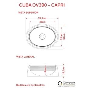 Sobre o ProdutoCuba de Apoio Oval Capri 39,5X30cm AmareloDescrição do ProdutoA cuba O39 Capri tem seu design tradicional, oval e um excelente escoamento de água, é fabricada em mármore sintético com acabamento em Hard Lacca PU, material bem semelhante a louça, muito resistente e mais econômico!!Itens Inclusos:1 Cuba de ApoioInformações Logísticas:Vol.01 - Comp.: 40cm - Prof.: 40cm - Alt.: 15,5cm - Peso Bruto: 4,8KgObservações:Não acompanha acessórios decorativos. Imagens meramente ilustrativas.Informações Técnicas / Características:- Cor: Amarelo- Marca: Compace- Modelo: CAOV390- Linha: Plus- Formato: Oval- Tipo de Cuba: Apoio- Material: Mármore Sintético- Acabamento: Hard Lacca PU- Escala de Brilho: Brilho- Possui Ladrão: Não- Possui Furação para Torneira: Não - Diâmetro do Furo para Válvula: (32mm) - DN 32 - Comprimento: 39,5cm- Largura: 30cm- Altura: 10,5cm - Peso Líq.: 4,5Kg- Recomendações de Uso, Manutenção e Limpeza: Utilize flanela seca ou pano macio, levemente umedecido com água. Evite contato com produtos químicos e abrasivos (solventes, thinner, acetona etc) e não utilize nenhum tipo de esponja de aço. Para maior brilho, recomendamos a utilização de cera automotiva n 2.- Necessita de Montagem: Sim / Acompanha Manual de Montagem- Complexidade da Montagem: Média: pode ser montado por mais de uma pessoa e/ou necessite de maior conhecimento para montagem.- Garantia: 6 meses Formato: Oval | Tipo de Cuba: Apoio | Material: Mármore Sintético | Acabamento: Hard Lacca PU | Escala de Brilho: Brilho | Possui Ladrão: Não | Possui Furação para Torneira: Não | Diâmetro do Furo para Torneira: 0 | Diâmetro do Furo para Válvula: (32mm) - DN 32 | Limite de unidades por venda: É possível comprar até 1 unidade por venda. | Quantidade máxima de pedido: 1 | Baterias são necessárias?: false Cor: Amarelo