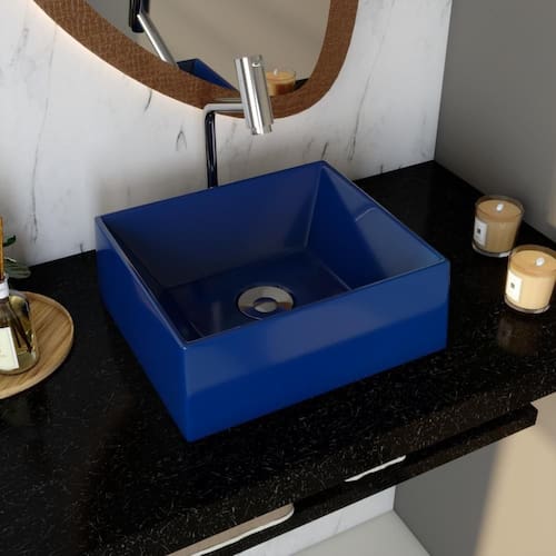 Formato: Retangular | Tipo de Cuba: Apoio | Material: Mármore Sintético | Acabamento: Hard Lacca PU | Escala de Brilho: Brilho | Possui Ladrão: Não | Possui Furação para Torneira: Não | Diâmetro do Furo para Válvula: (40mm) - DN 40 | Limite de unidades por venda: É possível comprar até 1 unidade por venda. | Quantidade máxima de pedido: 1 | Baterias são necessárias?: false Cor: Azul Escuro