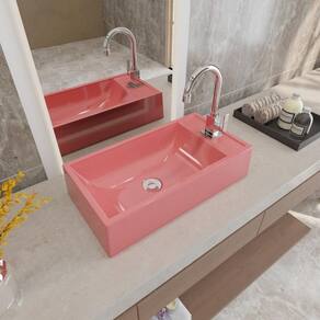 Formato: Retangular | Tipo de Cuba: Apoio | Material: Mármore Sintético | Acabamento: Hard Lacca PU | Escala de Brilho: Brilho | Possui Ladrão: Não | Possui Furação para Torneira: Sim | Diâmetro do Furo para Torneira: (32mm) - DN 32 | Diâmetro do Furo para Válvula: (40mm) - DN 40 | Limite de unidades por venda: É possível comprar até 1 unidade por venda. | Quantidade máxima de pedido: 1 | Baterias são necessárias?: false Cor: Rosa