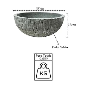 Cuba Bojo Rasgado Pedra de Sabão Pia Lavabo Lavatório 35cm Cuba Bojo Rasgado Pedra de Sabão Pia Lavabo Lavatório 35cm, também conhecida como lavatório ou bacia, é um componente essencial em um banheiro ou cozinha. Ela serve para a higiene pessoal, lavagem das mãos, escovação dos dentes, lavagem do rosto e realização de tarefas relacionadas à limpeza. A principal função da cuba de pia é fornecer um local conveniente para a água ser usada e drenada. Geralmente é conectada a uma rede de encanamento que permite o fornecimento de água limpa e a remoção eficiente da água usada. Medidas:Diâmetro do furo da válvula: 3cm ou 1,18”.Profundidade: 11cm.Diâmetro: 35cm.Altura: 13cm.Peso: 9Kg. Especificações:Este produto não é necessário fazer a cura.Indicações: Pia, bancada, lavatório e lavabo.Limpeza: Água, sabão e bucha.Material: Pedra de Sabão. Itens Inclusos:01 Cuba Bojo Rasgado Pedra de Sabão Pia Lavabo Lavatório 35cm. Código: AF100935INDSJProdutoLojaPlast.
