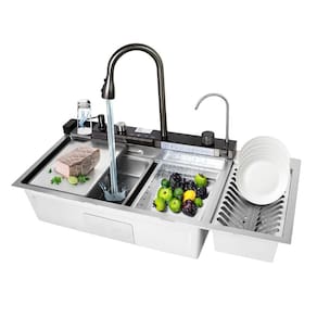 Cuba de cozinha gourmet automática multifuncional completa com calha lateral escovada