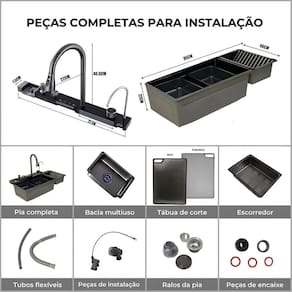 Com design único no mercado, nossa cuba conta com uma calha lateral e sistema de escoameto totalmente pensado em você e no seu confortoespecificações:medidas externas: 100cm x 46cm x 22cm medidas internas: 70 x 33 x 21,5 cmmaterial: aço inoxidável 304acabamento: pintura eletrostática preta com nanotecnologiaespessura: 3 mmaplicação: embutir ou sobreporfuração:torneira: embutidadosador: 2,8 cmlavador de copos: 2,8 cmválvula: 4 1/2válvula escape/ladrão: simcapacidade do dispenser de detergente: 500 mlindicação: cozinha, churrasqueiracompatível com triturador: simantirruído: simacessórios inclusos: simimportante:filtro de água não inclusoa cuba não é elétrica, ou seja, não precisa ser conectada à rede elétrica.Torneira monocomando água quente e fria - a água quente é proveniente do sistema de aquecimento da residência elétrico, gás ou solar .O filtro de carvão ativado para a torneira de água filtrada deve ser adquirido separadamente não incluso .Garantia: