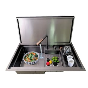 Esta cuba gourmet de cozinha em aço inox 304 é o ápice da modernidade e funcionalidade, projetada para quem valoriza praticidade e sofisticação. Com sistema automatizado e lavador de copos integrado, possui uma torneira moderna com três tipos de jato, adaptando-se a diferentes necessidades de uso.