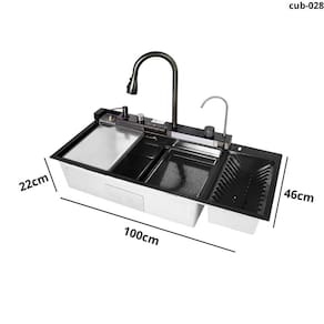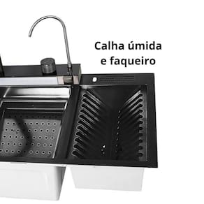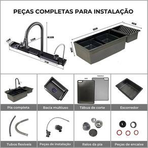 Cuba de cozinha gourmet automática multifuncional completa com calha lateral preta Esta cuba gourmet de cozinha em aço inox 304 é o ápice da modernidade e funcionalidade, projetada para quem valoriza praticidade e sofisticação. Com um sistema automatizado e controle por botões, possui dois jatos de água em cascata para lavagem de louças e alimentos, adicionando um toque elegante ao design. Inclui também um lavador de copos integrado, facilitando a limpeza de utensílios delicados, além de uma torneira com três tipos de jato, adaptando-se às diferentes necessidades de uso. Pontos de destaque: Material de qualidade A cuba é produzida em aço inoxidável 304 de alta qualidade, com acabamento em pintura eletrostática com nanotecnologia, resultando em um produto anti-ferrugem, anti-risco e resistente ao desgaste. Cascata de pia O sistema inovador de cascata de pia é um verdadeiro divisor de águas ele não só proporciona à sua cozinha uma aparência moderna e inovadora, como também facilita a limpeza de legumes, saladas e frutas. Super torneira A torneira gourmet extensível, também em aço inox 304, é retrátil e possui 3 modos de pulverização. Oferece mais facilidade na limpeza e na higienização de alimentos, além de facilitar a organização e limpeza da pia. Acionamento do ralo O sistema de acionamento do ralo permite drenar a água com facilidade, ativando um botão, sem precisar tocar no ralo e mantendo as mãos secas. Torneira filtrada Acompanha uma segunda torneira para água filtrada. O filtro de carvão ativado pode ser instalado facilmente não incluso, deve ser adquirido separadamente . Painel com 5 teclas Todas as funções da cuba podem ser controladas por meio de 5 teclas no painel: torneira principal, cascata 1, cascata 2, lavador de copos e torneira de água filtrada. Textura em colmeia Com um acabamento inovador, a textura em colmeia no fundo e nas laterais da cuba não só confere um visual moderno e elegante, como também facilita a higienização, pois os resíduos não grudam com facilidade. Calha lateral Com design único no mercado, nossa cuba conta com uma calha lateral e sistema de escoameto totalmente pensado em você e no seu confortoespecificações:medidas externas: 100cm x 46cm x 23cm medidas internas: 70 x 33 x 21,5 cmmaterial: aço inoxidável 304acabamento: pintura eletrostática preta com nanotecnologiaespessura: 3 mmaplicação: embutir ou sobreporfuração:torneira: embutidadosador: 2,8 cmlavador de copos: 2,8 cmválvula: 4 1/2válvula escape/ladrão: simcapacidade do dispenser de detergente: 500 mlindicação: cozinha, churrasqueiracompatível com triturador: simantirruído: simacessórios inclusos: simimportante:a cuba não é elétrica, ou seja, não precisa ser conectada à rede elétrica.Torneira monocomando água quente e fria - a água quente é proveniente do sistema de aquecimento da residência elétrico, gás ou solar .O filtro de carvão ativado para a torneira de água filtrada deve ser adquirido separadamente não incluso .: