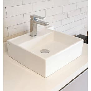 Cuba Quadrada Branca Semi Brilho. A tradicional cerâmica branca semi brilho com a modernidade das peças Reno Com mesa para torneira tradicional ou monocomando, amplo espaço de área molhada.