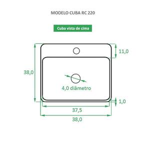 Limpeza: Orientamos que a limpeza seja feita com pano úmido, água e sabão neutro. Não deve ser utilizado produtos químicos e nem abrasivos, pois danificará a pintura da cuba.