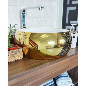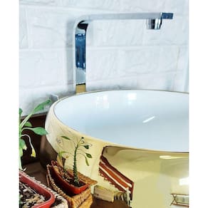 Cuba de Apoio Cerâmica Reno RC 7000 Branca e Dourada