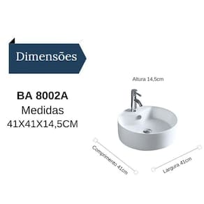 Sua pintura é esmaltada na cor branco brilhante. Este modelo apresenta formato redondo, se encaixando facilmente em vários modelos de bancada.